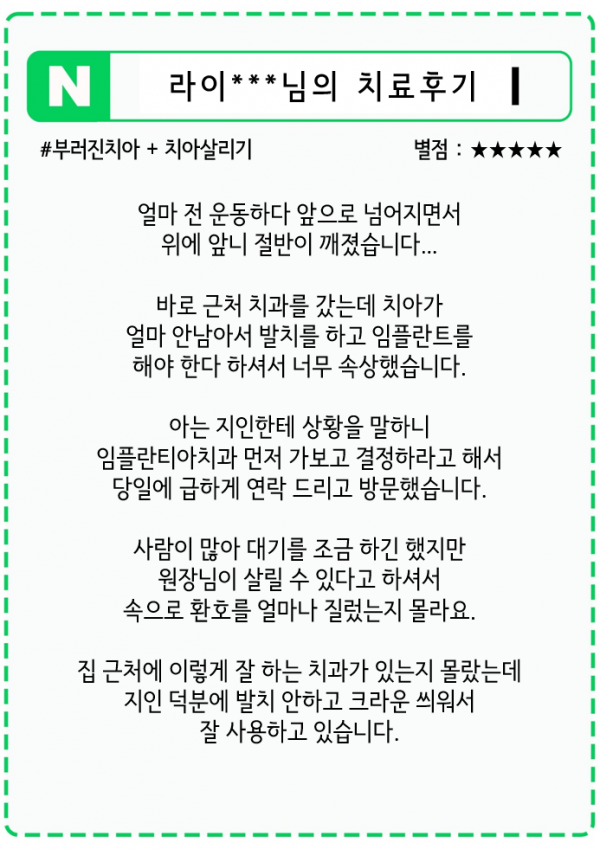 치아살리기의 압도적 결과는 헌신하는 의료진의 결실입니다.